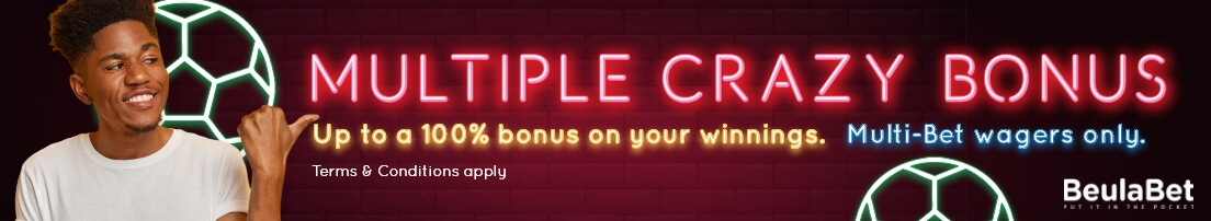 Boost your Sports odds of up to an extra 100% percentage with our Multiple Crazy Bonus.
